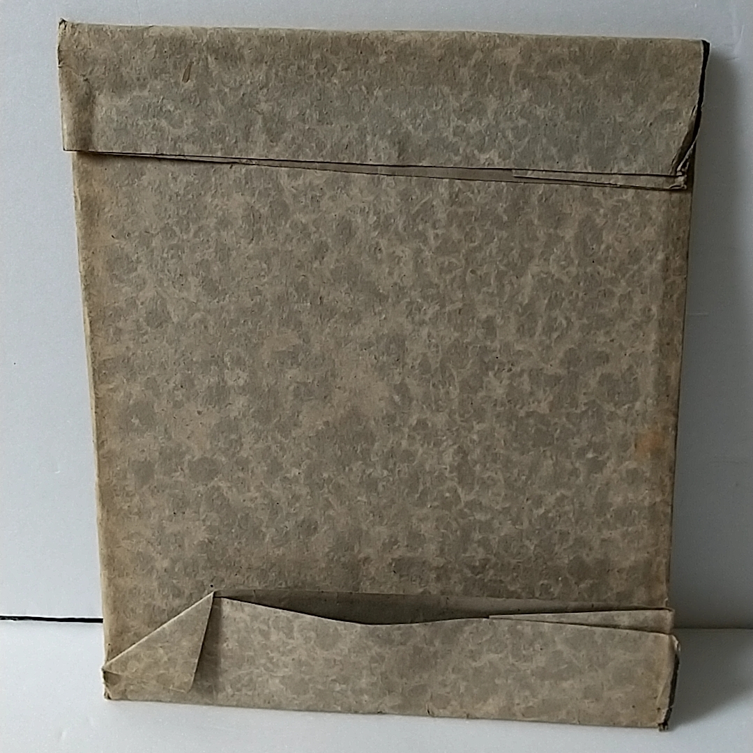 Auf der Papierverpackung aus braunem, groben Japanpapier sind zwei Kanji zu sehen: