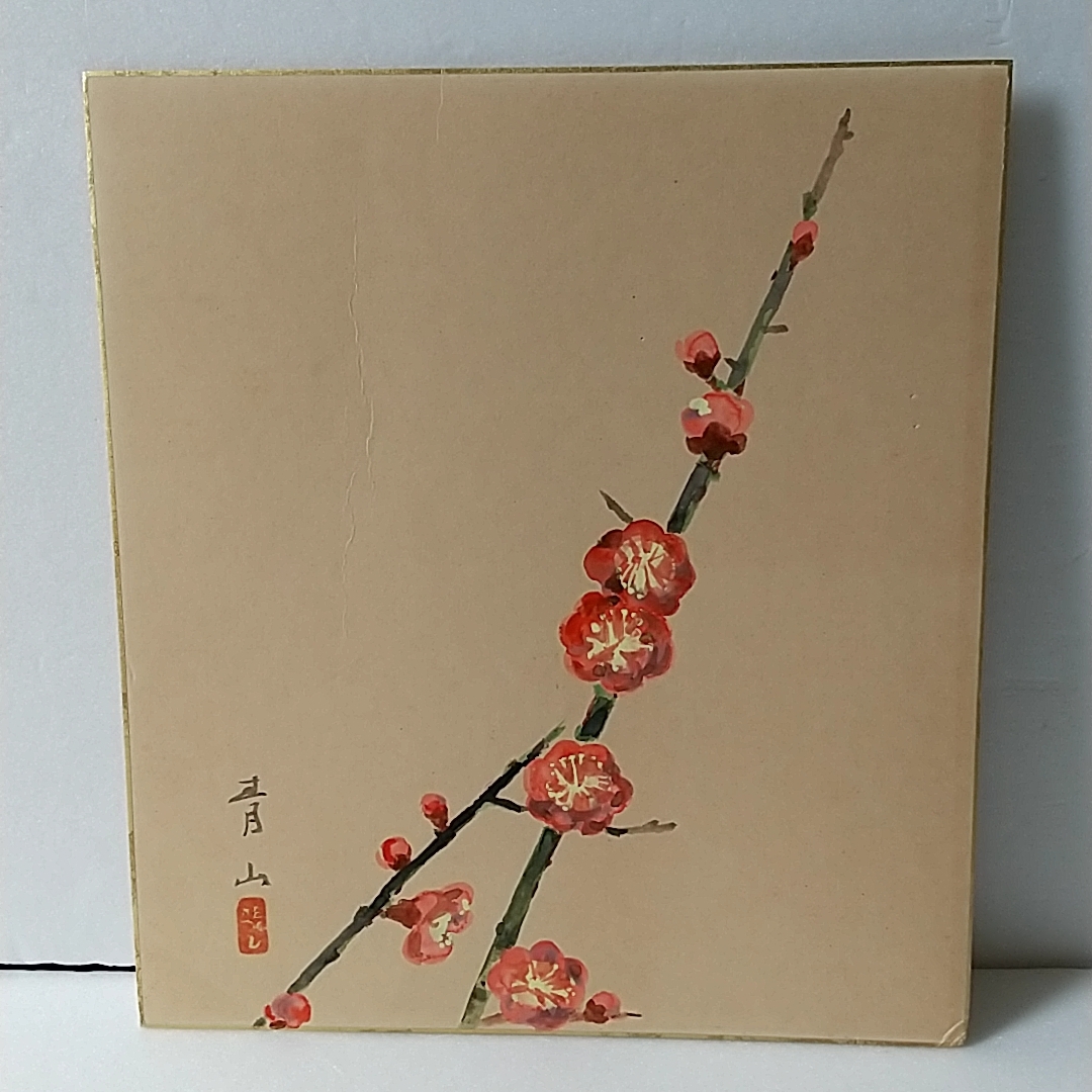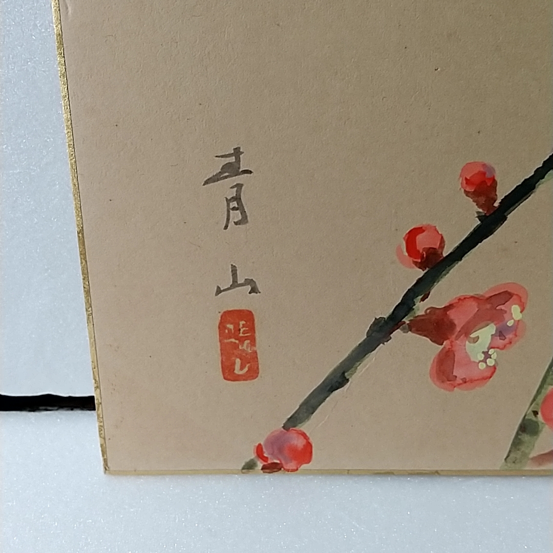 色紙 sind quadratische, mit Karton versteifte Papiertafeln mit Goldrand von etwa 24×27cm Größe. Sie werden verwendet für Kalligrafie, Haiku, Malerei oder Autogramme.