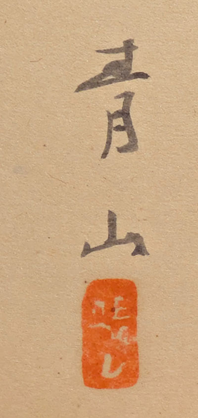 → „Aoyama“ oder „Grüner Berg“ – ein Künstlername 号 oder Tempelname.