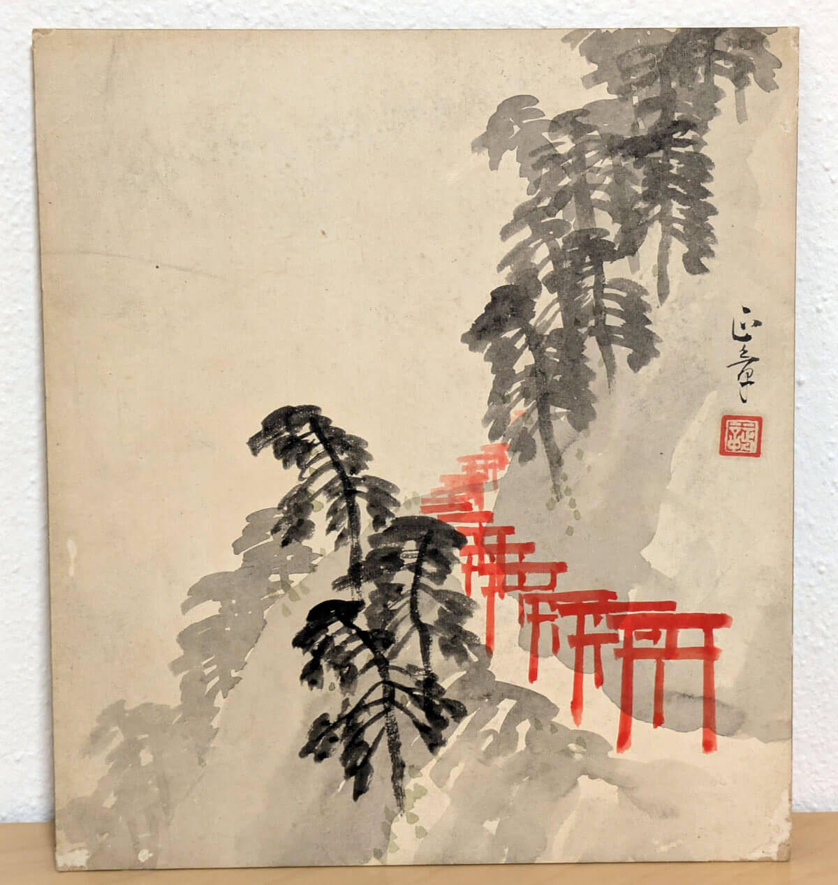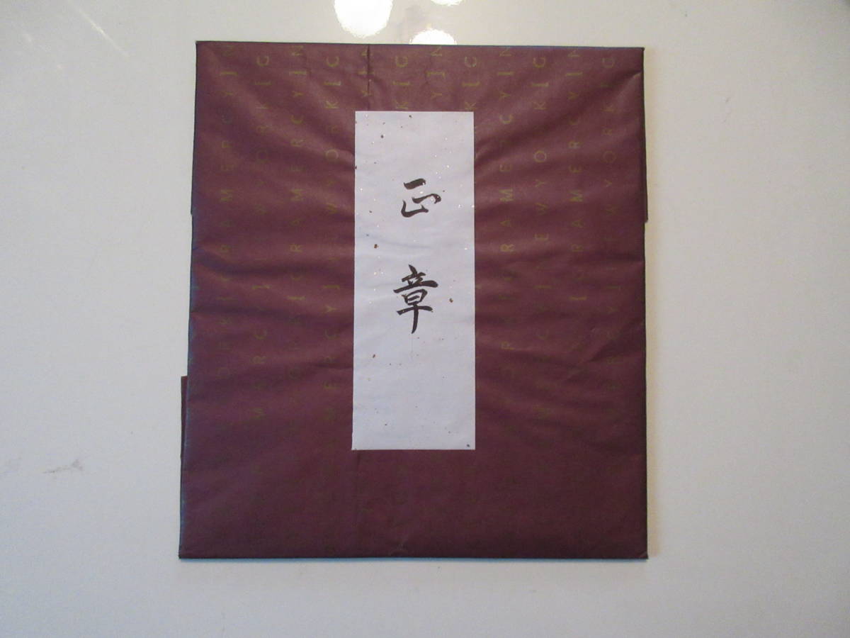 色紙 sind quadratische, mit Karton versteifte Papiertafeln mit Goldrand von etwa 24×27cm Größe. Sie werden verwendet für Kalligrafie, Haiku, Malerei oder Autogramme.