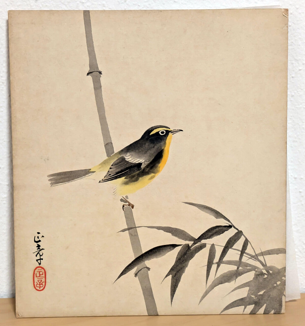 Gemälde eines Kibitaki (キビタキ, wissenschaftlicher Name: Ficedula narcissina), auch bekannt als »Narcissus Flycatcher«