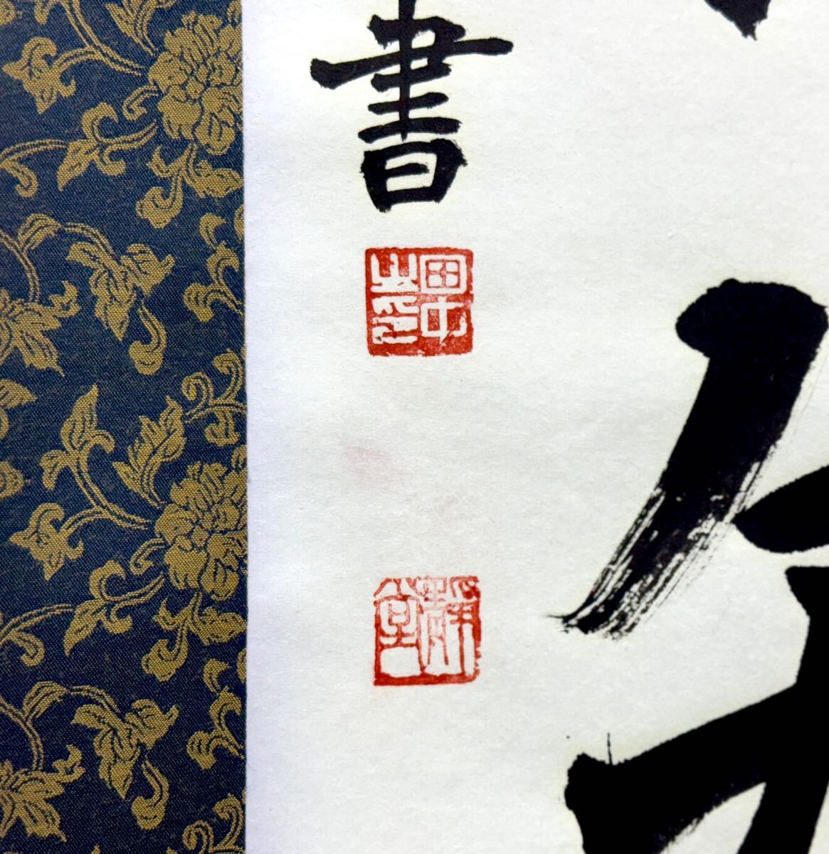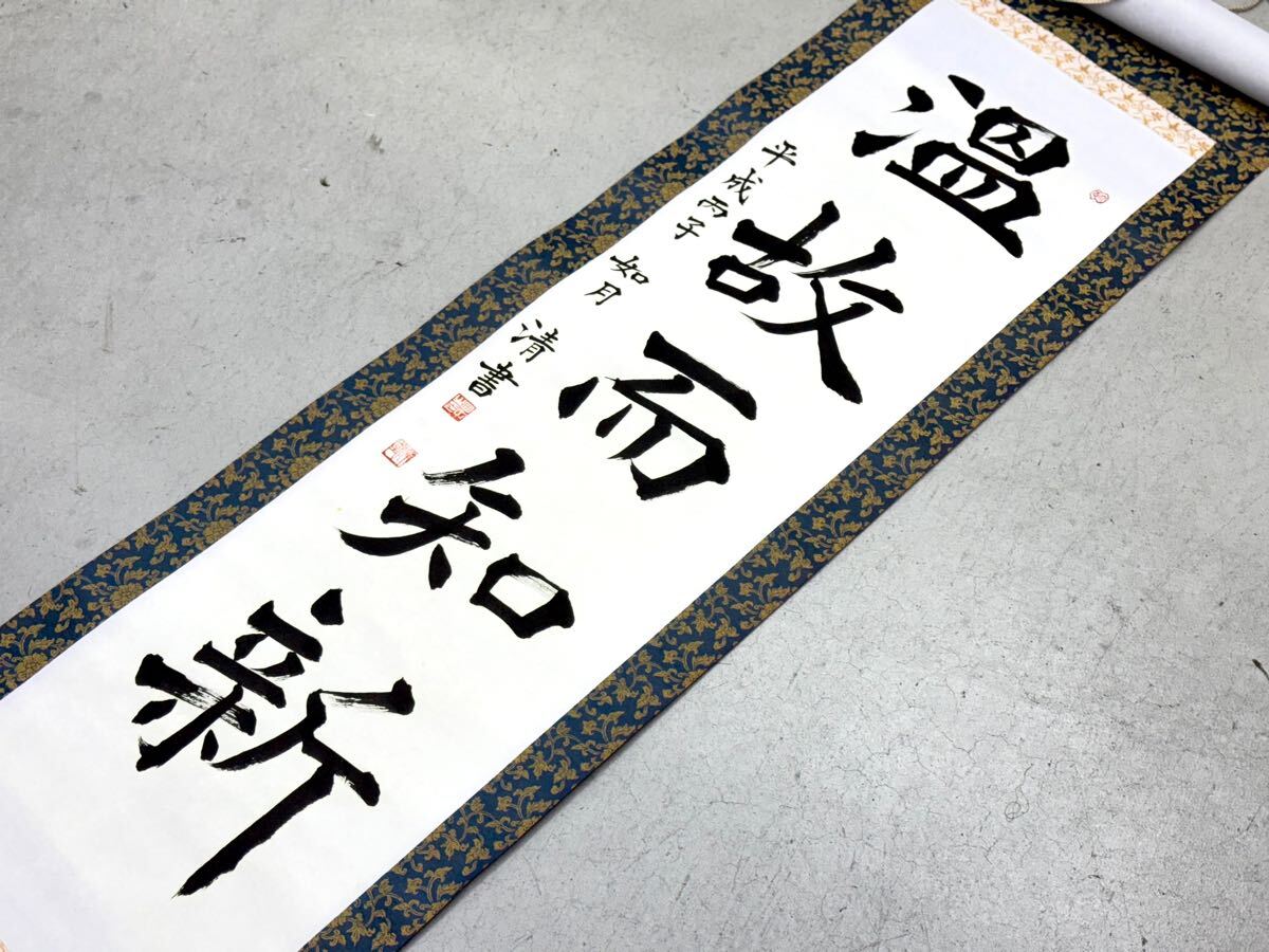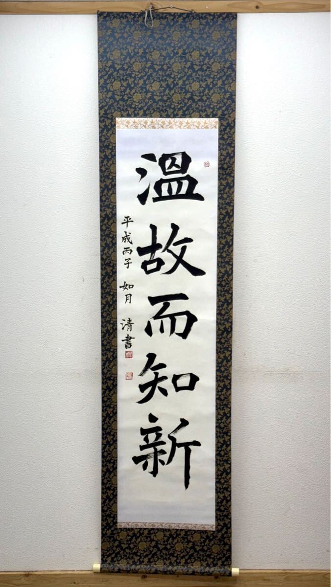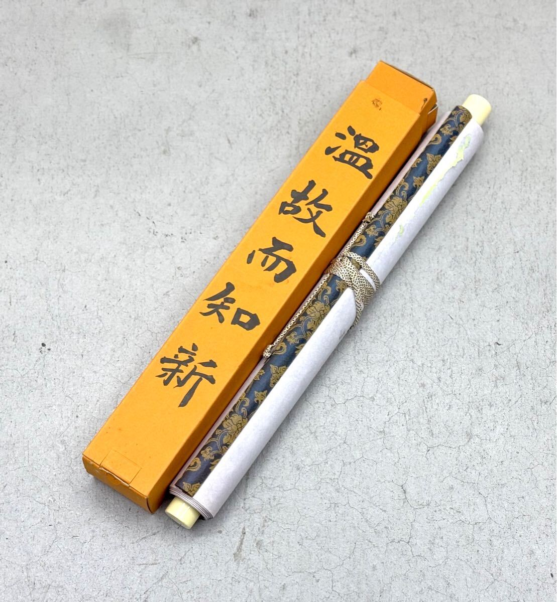 - Kalligraphieschriftrolle mit dem Schriftzug 温故而知新 „Altes betrachten und daraus Neues erkennen.“