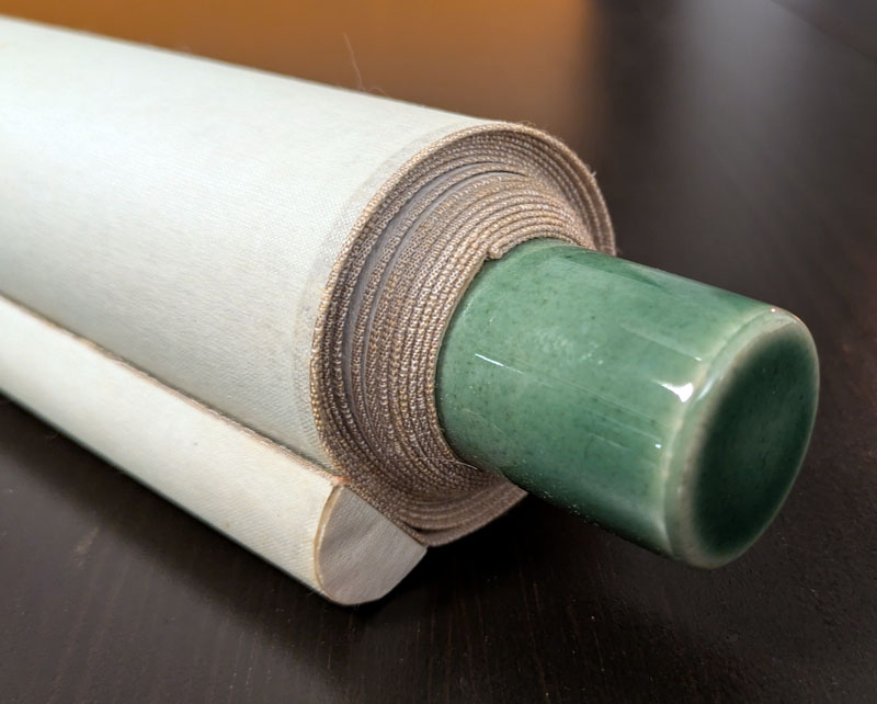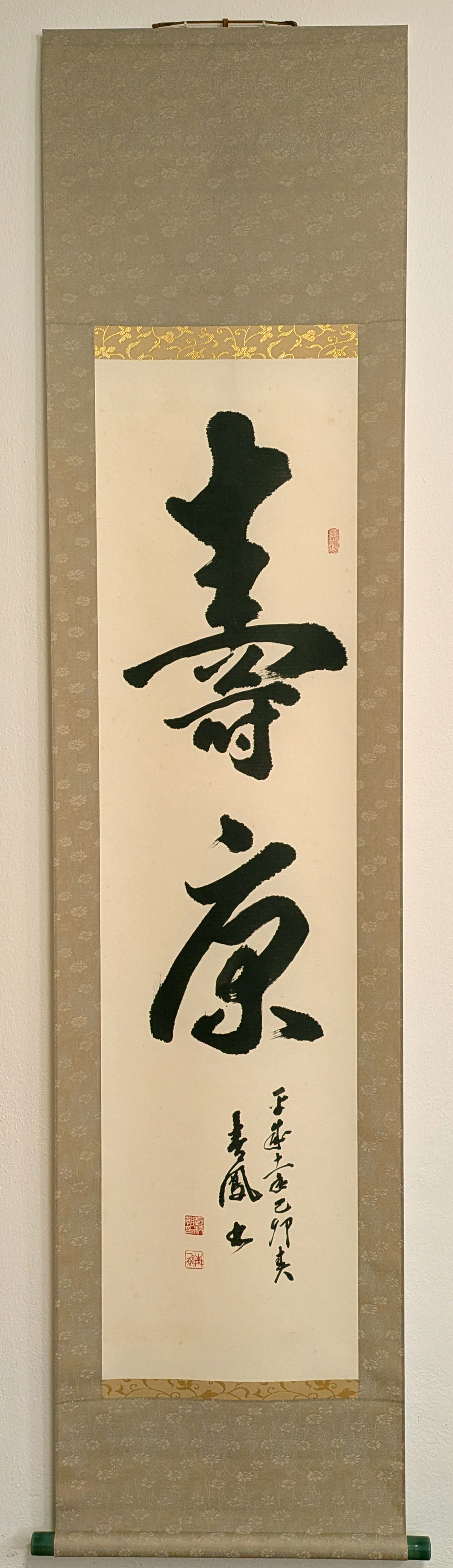 Solche Schriftzeichen sind typisch für Hängerollen, die als Geschenk oder zu feierlichen Anlässen aufgehängt