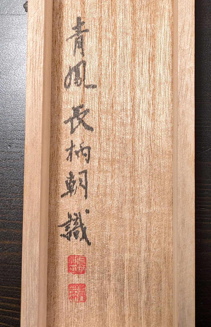 Gefertigt vom Teemeister Heijutsu im Jahr des Erden-Hasen, [unter dem Titel/Namen] Seifū 5.