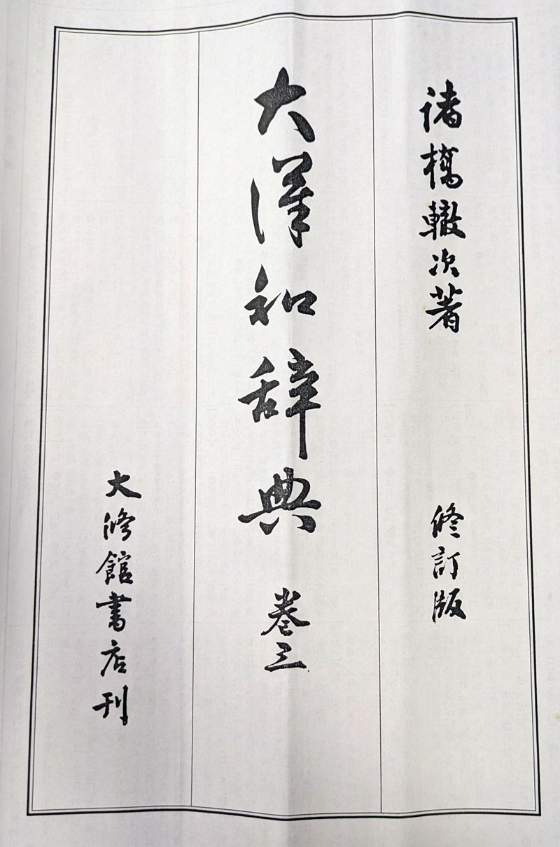 Das Bild zeigt die Titelseite von Band drei der 修訂版 大漢和辭典 (Überarbeitete Ausgabe des Großen Chinesisch-Japanischen Wörterbuchs).