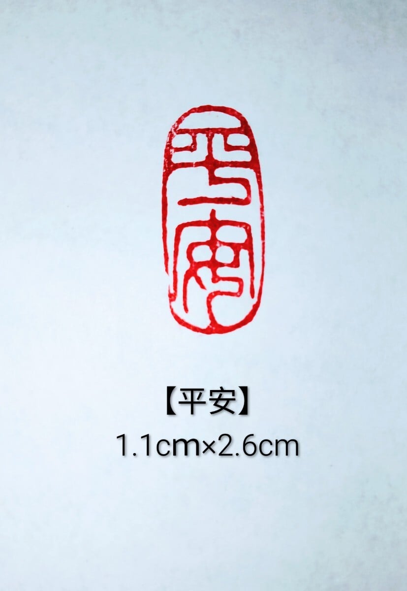 Die Inschrift auf diesem Siegel ist 平安, was "Frieden", "Ruhe" oder "Wohlergehen" bedeutet.