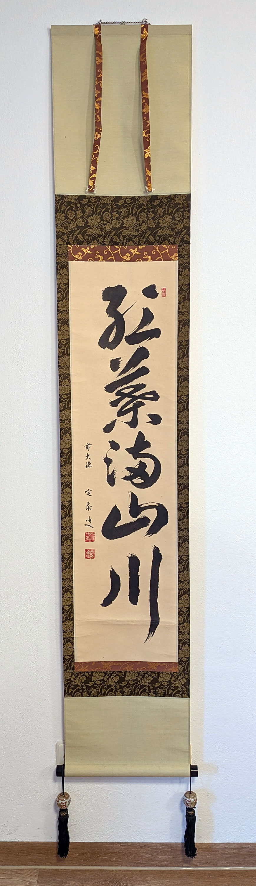 ist ein Meister der Kalligrafie, einschließlich einzeiliger Tee-Hängerollen. Sein zweiter Sohn, der Abt des Kenninji-Tempels, war Reverend Kobori Taigen.