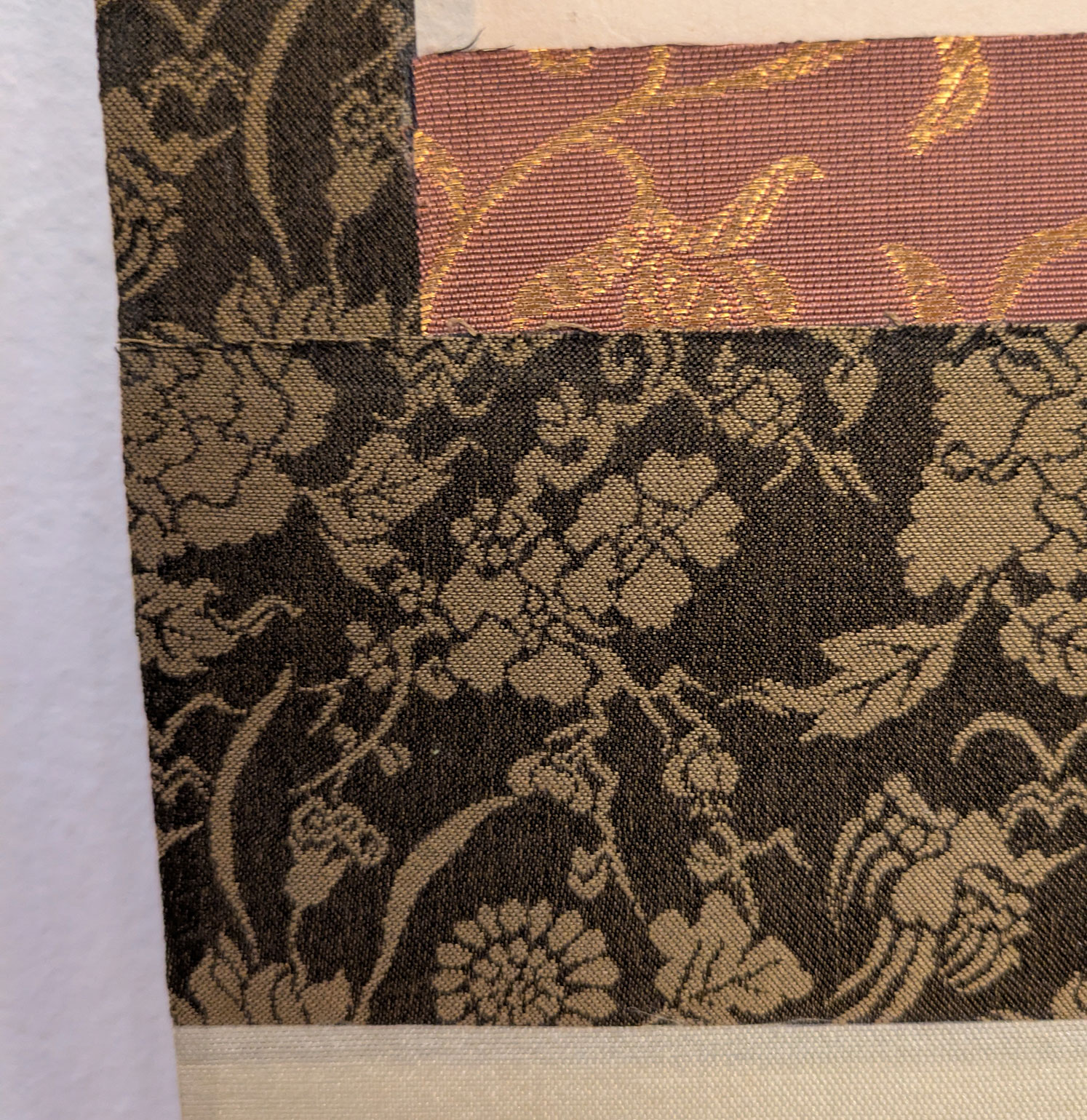 In den letzten Tagen ist es kälter geworden, und die Blätter der Bäume in den Bergen färben sich immer röter. Der Zen-Satz bezieht sich darauf. Beides sind Herbstgedichte, die oft bei Teezeremonien verwendet werden.