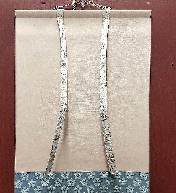 一文字 Ichimonji Das Stück Stoff, das oben (上) und unten (下) am Hauptpapier befestigt ist. Es ist typischerweise lang und schmal und besteht oft aus Goldbrokat. |