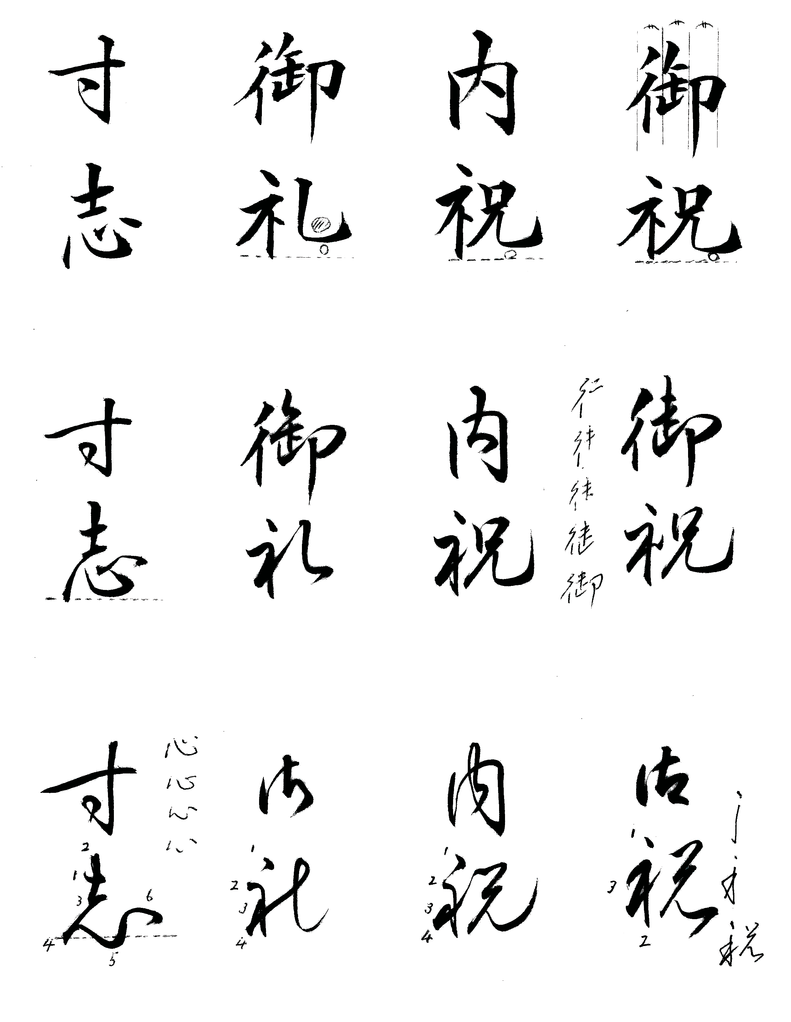 - Lerne die spezifischen Abkürzungen für Radikale (Bausteine von Schriftzeichen). Ein Quadrat wird im Gyōsho oft