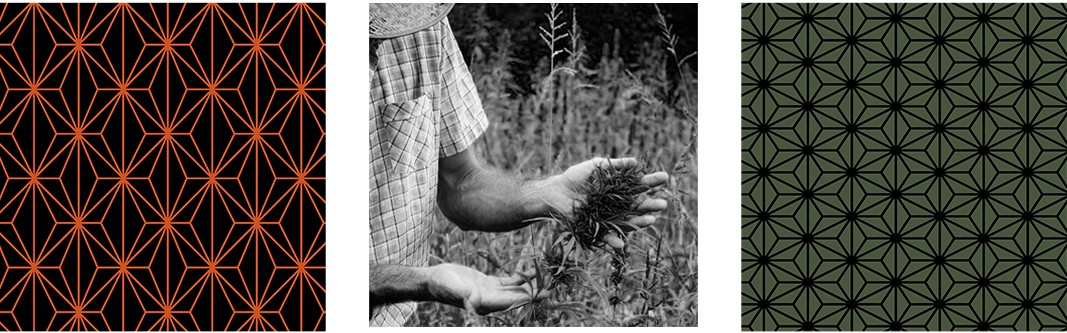 Asanoha zeigt ein geometrisches Muster aus Hanfblättern. Hanf ist in Japan seit Langem eine wichtige Pflanze und