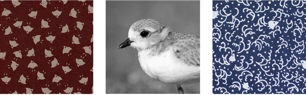 Chidori, oder Regenpfeifer, sind Zugvögel in Japan. Sie werden üblicherweise beim Flug über Wellen dargestellt.