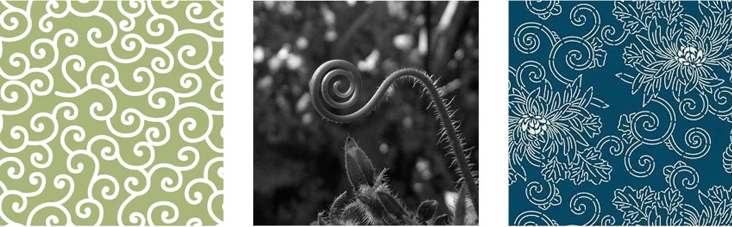 Karakusa, oder „Arabeskenmuster“, leitet sich von den Mustern an Stängeln, Ranken und den Verbindungen zwischen