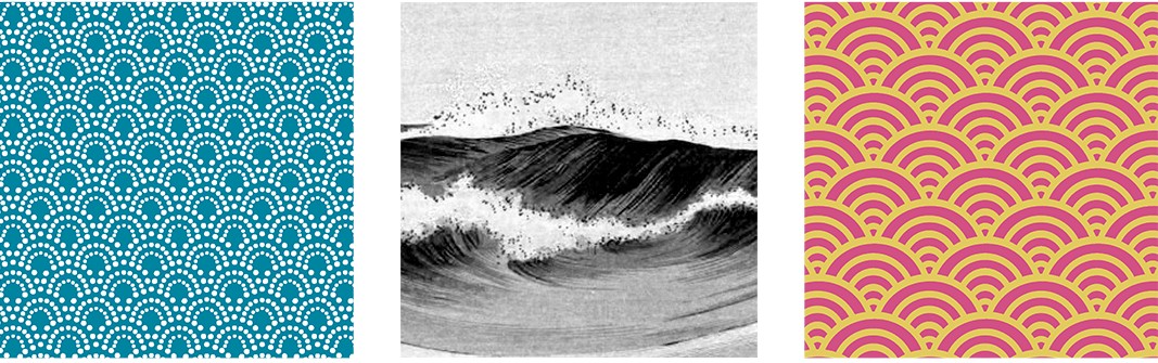 Seigaiha bedeutet „blaue Meereswellen“. Dieses Muster wurde in Ägypten, Persien und weltweit verwendet. In Japan