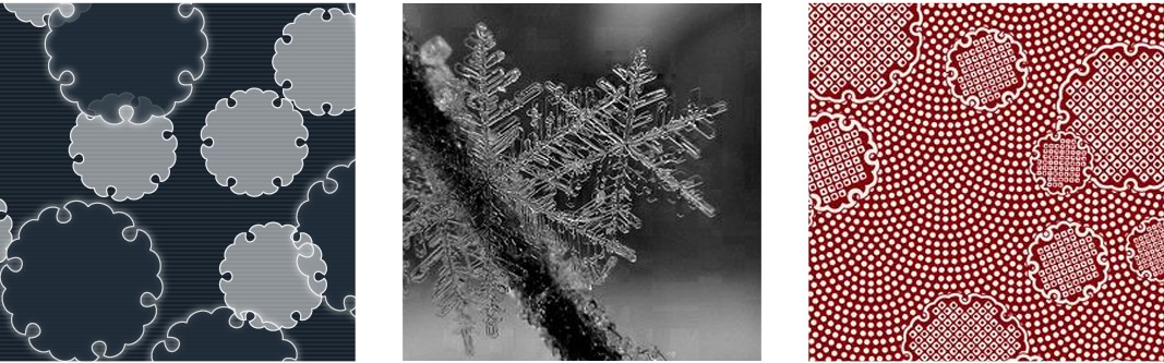 Das Yukiwa-Muster stellt Schneeflocken dar und wurde gezeichnet, bevor man die geometrischen Strukturen von