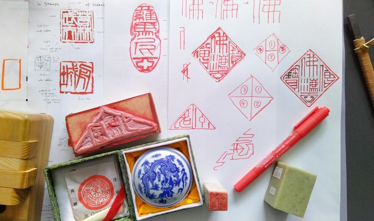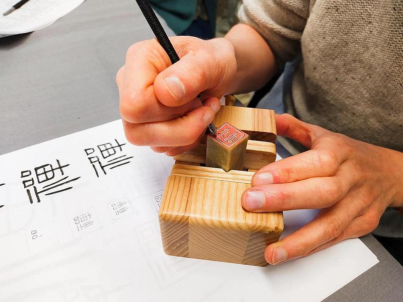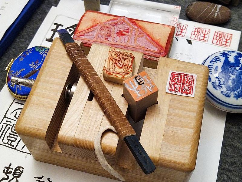 Tenkoku 篆刻 ist die traditionelle ostasiatische Kunst des Siegelschneidens, bei der Schriftzeichen oder Motive in Materialien wie Stein, Holz oder Horn graviert werden.
